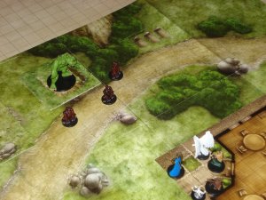 I finished my game prep early enough to drop by here and make another mini-post. This time it’s a preview of what awaits my players and is also a showcase of what you can do with the D&D battlemaps, tiles and miniatures.