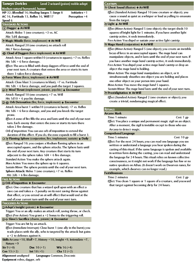 I notice that you put some of your advice into action here by including a Changeling character, a race that as far as I recall, doesn’t have a history in Dark Sun.