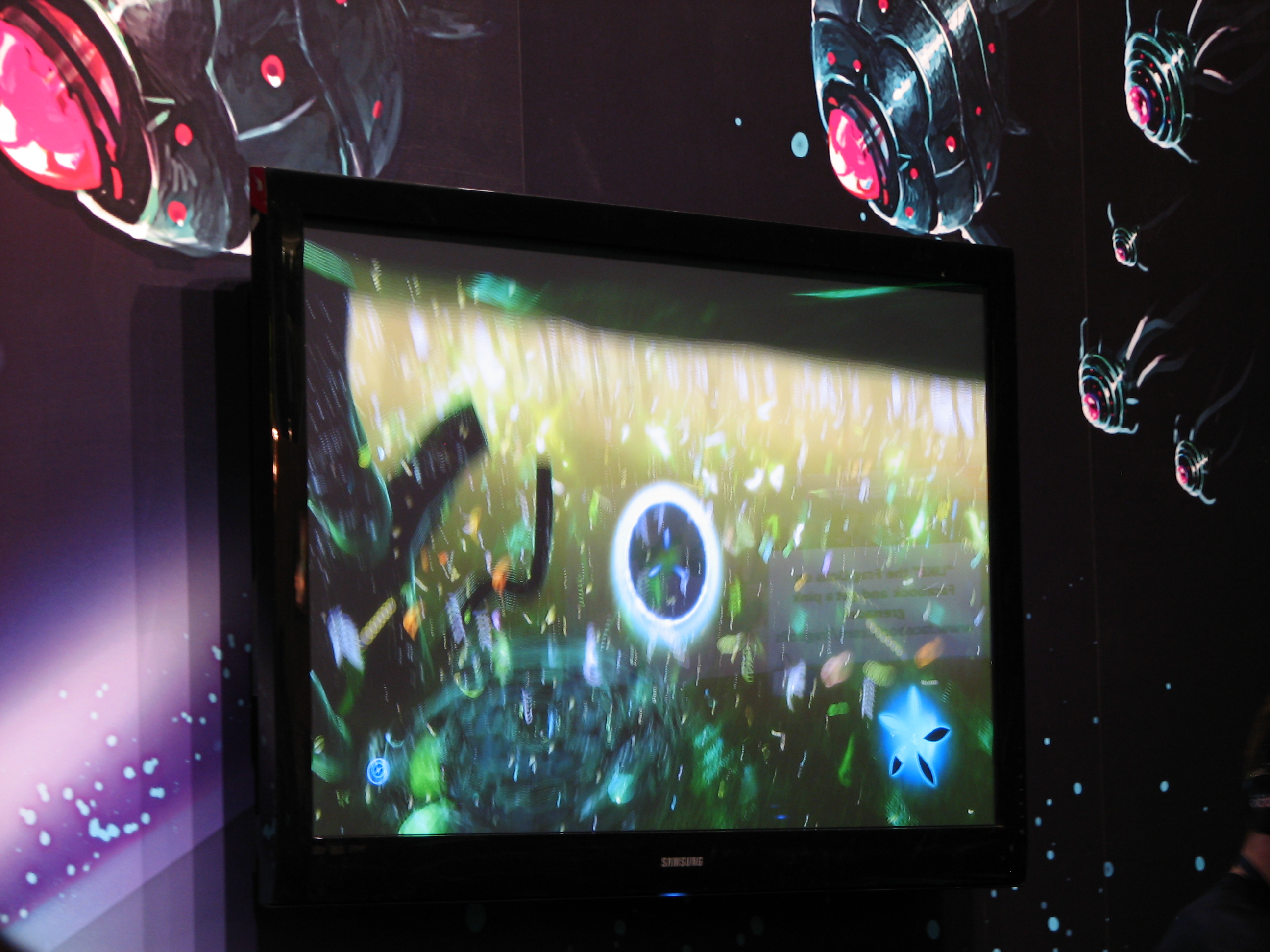 The next game that I was really looking forward to seeing is the new Mortal Kombat, which is promising to stick closer to the original games in its design rather than the later games in the series which have changed quite a bit. Unfortunately the gameplay moves so fast that getting a picture of it always turned into an unintelligible blur, but let me assure you that the graphics look excellent and the game play very clearly emulates the first two Mortal Kombat games in its style. I haven’t played any fighting games in a long time, but with first Marvel vs. Capcom 3 and now this game I have started to take notice of the genre again.