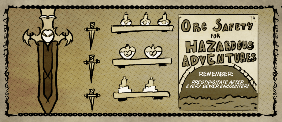 But… if you want the dungeon to be a lucrative source of constant income, remember, Murder Hobo friends: occupational safety is your friend! If you feel the dungeon is insufficiently safe or you are not provided an adequate number of healing items, please see your local Quest Giver Safety Board.