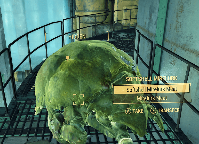 All this might seem bothersome here in black and white, but it adds a tremendous amount of immersion to the game. Do you go ahead and butcher that radroach or bloatfly in case you’re in dire need of a snack later? Or do you turn your nose up and go for higher or lower lifeforms to munch? (I never, ever eat radroach. I’ll starve first.) Do you hunt and gather to make sure your food stores are adequate? Or do you take perks or use gear that make it okay to eat irradiated prewar food and drink from those radioactive puddles? (2)